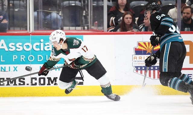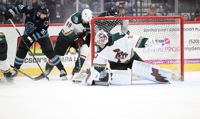 Tucson was the first on the board, the first of four goals in Saturday’s 4-3 overtime victory for the San Jose Barracuda over the Tucson Roadrunners. Noel Nordh scoring his third powerplay goal of the season, after Anthony Vincent took a two minute high stick penalty. T