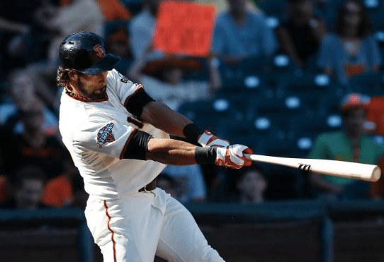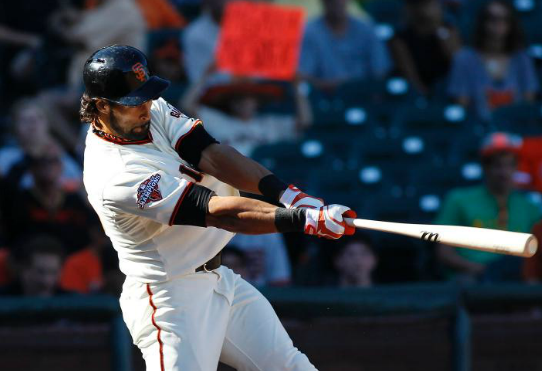 Going up against Diamondbacks pitcher Joe Thatcher with the score tied at 2, Hector Sanchez grounded a leadoff single to left field to start the Giants eleventh inning rally. To add some speed to the bags, Giants manager Bruce Bochy put in pinch-runner Ehrie Adrianza in his first major league appearance. Gregor Blanco followed with sacrifice-bunt attempt to help move Adrianza over to second however instead of going for the sure out at first, Diamondbacks catcher Miguel Montero threw to second base and wasn’t able to get Adrianza and Blanco reach first safely. Pagan then came up and knocked a 1-1 four-seam fastball to left field that Willie Bloomquist tried to relay in but if was off-line and Adrianza was able to slide in safely.