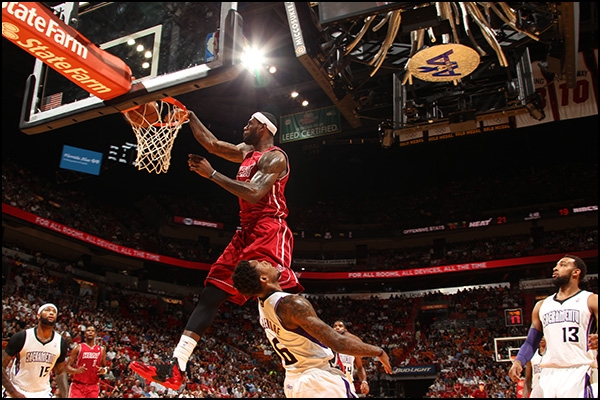 Chris Bosh paced the Heat with 25 points. Dwayne Wade added 20 while “the King” poured in 18.