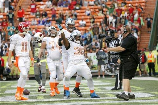Foles finished 7 of 10 for 89 yards and a touchdown pass to Jordan Cameron that gave Team Sanders a 21-14 lead with 4:41 remaining. But former 49er and current Chiefs’ quarterback Alex Smith led Team Rice down the field in the final minutes culminating with a 20-yard swing pass to DeMarco Murray that put his team within an extra point to tie or a 2-point conversion to win. With travel logistics weighing in to the decision, Team Rice decided to go for two and got it when Tolbert stuck his nose in the middle of the line and snuck the ball across for the game winner.