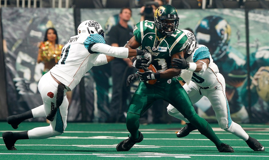 The SaberCats got on the board first when Michna connected with Jason Willis for an 18-yard touchdown in the back of the end zone. On Arizona’s first possession Quarterback Nick Davila drove the team down the field in less than a minute and found their leading receiver Maurice Purify on a 20 yard touchdown to notch the score at seven a piece. After a crazy hit on Willis on the kick return the SaberCats drove down the field again and handed the ball over to Odie Armstrong who was able to dive into the end zone and give the Cats the one touchdown lead. Then like last time, Davila drove the Rattlers down the field again on three plays when he found Tyson Poots for the touchdown to make it a 14-13 game. The Rattlers missed the extra point to give San Jose the one point lead heading into the second quarter.