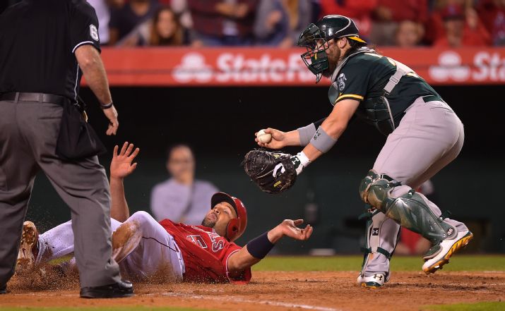 The highlight of the night for the A’s was in the bottom of the eighth when Cesepedes bobbled Mike Trout’s double to left field and after picking up the ball he saw Howie Kendrick rounding third and threw a laser to Derek Norris who was able to tag out Kendrick. Check out the video of the throw below: