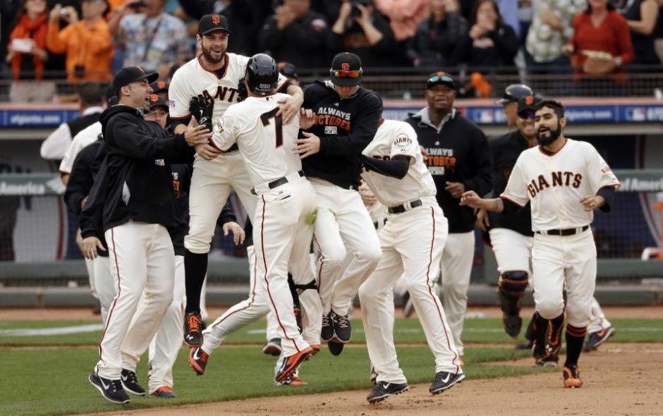 Travis Ishikawa got the Giants on the board early, as he took a John Lackey pitch in the bottom of the first inning and put it into the right-center field alley way that allowed three runs to score.