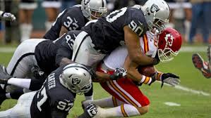 Following the Carr to Jones touchdown that gave the Raiders the lead, Alex Smith began to drive the Chiefs down the field for a potential game-winning score; however Smith’s desperation pass on fourth-and-13 fell incomplete and the Raiders could celebrate their first win of the season.