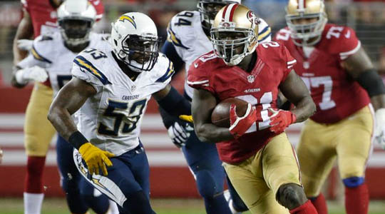 For the 49ers, a team-record 355 yard team rushing effort was wasted by a pair of second half turnovers that led directly to San Diego touchdowns. On the Chargers’ final drive, a depleted and fatigued 49ers’ defense allowed a 14-play, 80-yard drive culminating with Philip Rivers connecting with Malcom Floyd on an 11-yard touchdown pass with 29 seconds remaining.