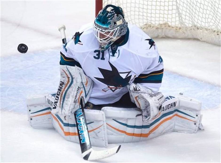San Jose Sharks’ Antti Niemi made 33 saves as his teammates provided plenty goal support in a 5-1 win over the Vancouver Canucks Thursday.