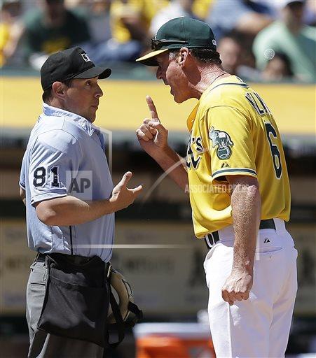 Accordingly, the A’s lead evaporated in the third and fourth innings, and Melvin was tossed, having had enough of Wolcott’s missed calls.