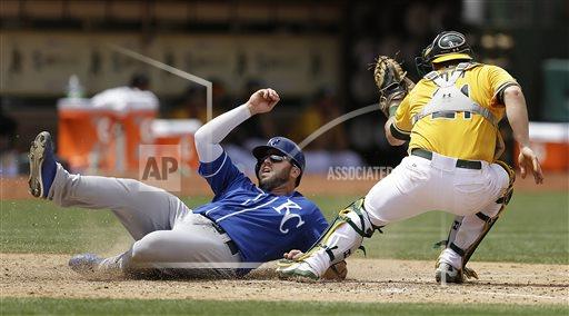 The Oakland bullpen had a much rougher ride as Edward Mujica pitched the eighth only to allow Salvador Perez’s two-run homer that gave Kansas City a 5-2 lead and stood as the difference in the game. The A’s have dropped 30 of the 40 games they’ve been in decided by two runs or less.