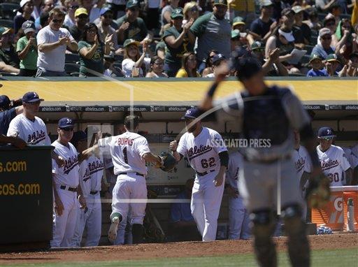 The speedy Burns singled on the game’s first pitch, then three pitches later, stole second. Stephen Vogt walked on the next pitch, and Ben Zobrist singled in Burns on pitch number seven.