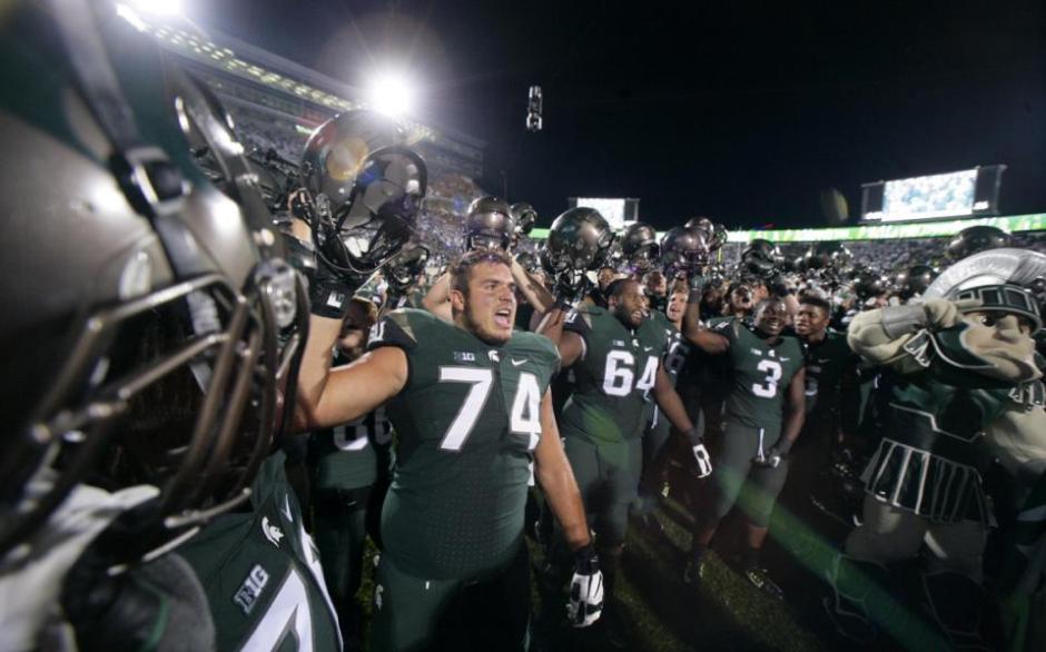 photo credit yahoo sports (Michigan St after game with Oregon)