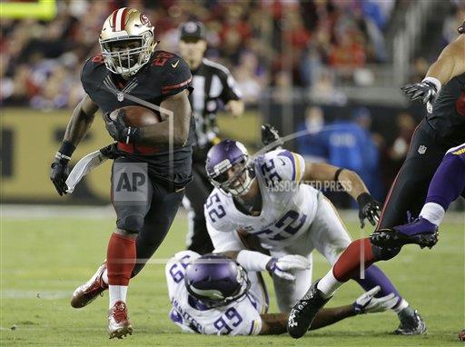 Minnesota quarterback Teddy Bridgewater spent most of the evening under pressure provided by the clever 49ers’ rush schemes, and limited to check down routes that more often than not didn’t move the sticks. The Vikings couldn’t establish Peterson, couldn’t take advantage of the youthful 49ers’ secondary, or get on the scoreboard before or after Blair Walsh’s 37-yard field goal at the outset of the fourth quarter.