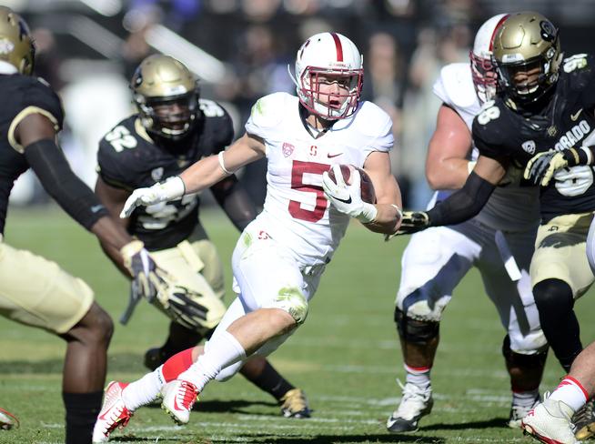 photo credit Daily Camera: Stanford’s Christian McCaffrey running on Colorado Sat Nov 9