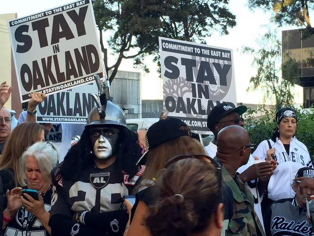 photo credit bayareanewsgroup.com Raider fans protest LA move at Paramount theatre on Oct 29th