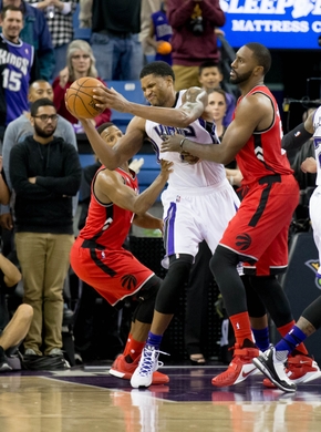 The Kings trailed the Raptors by 10 points early in the fourth quarter. Sacramento battled back using a bruising defense and opportunistic scoring to tie the game. The Kings went on a 11-0 run holding the Raptors scoreless in the final 2-minutes and 52-seconds.