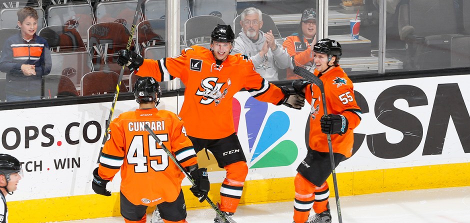 SAN JOSE–Frustration was beginning to mount in San Jose. The Barracuda had dropped three straight, and looked like they were going to extend that streak after finding themselves down 3-0 early. It was the same old, same old for the ‘Cuda, struggling on penalty kills — until out of nowhere, five straight goals gave the Barracuda a stunning 5-4 win over the Stockton Heat.