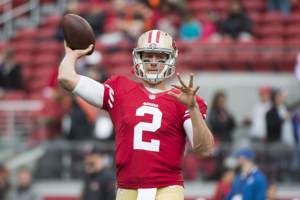 USA Today photo SF 49ers quarterback Blaine Gabbert all dressed but nowhere to go
