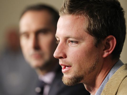 AP photo: St.Louis Cardinal pitcher Mike Leake meets the press on Tuesday during his signing with the Cards