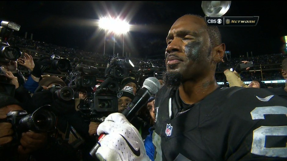 photo credit: CBS Sports & screengrabber.com Oakland Raiders Charles Woodson saying goodbye to Oakland crowd for last time