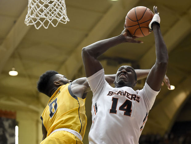 photo credit: Corvallis Gazzette Oregon State’s Daniel Gomis shoots over Cal’s Jaylen Brown Saturday night