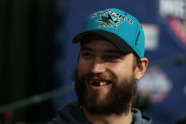 photo credit: zimbio.com–San Jose Sharks Brett Burns who scored the tying goal in the second period at 11:46 against the Bruins on Tuesday night