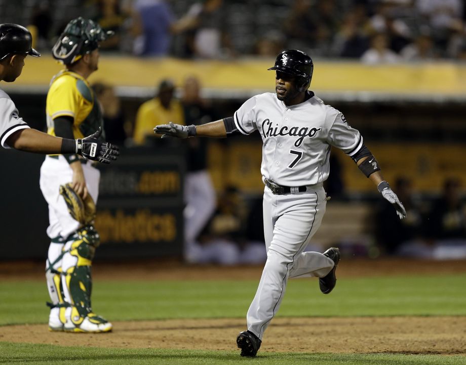 photo credit San Francisco Chronicle: The Chicago White Sox Jimmy Rollins crosses home plate after hitting a ninth inning homer off A’s reliever Sean Doolittle
