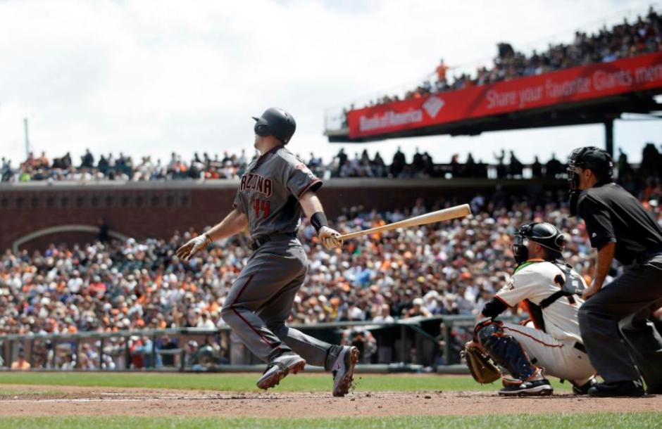 AP photo Marco Jose Sanchez: The Arizona Diamondbacks Paul Goldschmidt takes a hack for a RBI single in third inning of Thursday’s game against the San Francisco Giants at AT&T Park