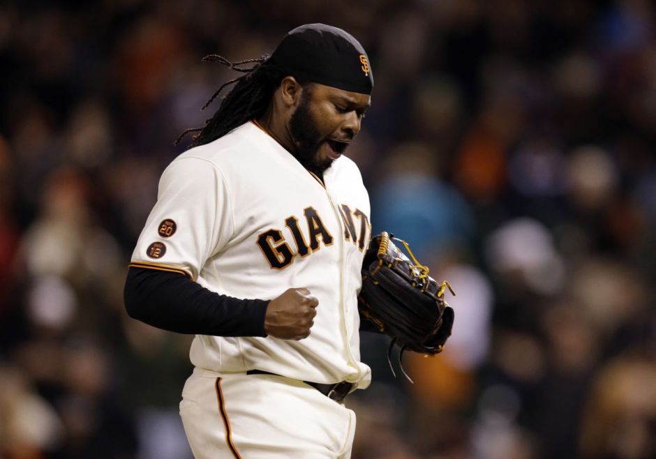 AP photo: San Francisco Giants pitcher Johnny Cueto exults after pitching a shutout against the San Diego Padres on Tuesday night