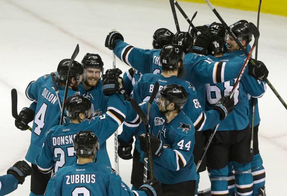 AP photo: San Jose Sharks go into celebration mode after clinching their first NHL Finals in franchise history on Wednesday night at SAP Center