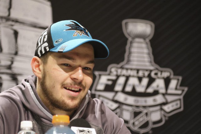 photo by lapresse.ca: San Jose Sharks Tomas Hertl at NHL Stanley Cup Finals press conference from Saturday at SAP Center