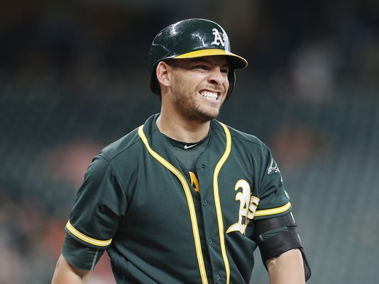 USA Today photo: Oakland A’s Danny Valencia who has hit .342 with 10 homers, 32 RBIs, since coming off the DL has helped provide some punch for the A’s recent success