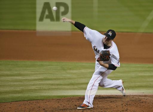 AP photo by William Lee: Miami Marlins starter Tom Koehler throws against the San Francisco Giants in the fourth inning in Miami Tuesday night