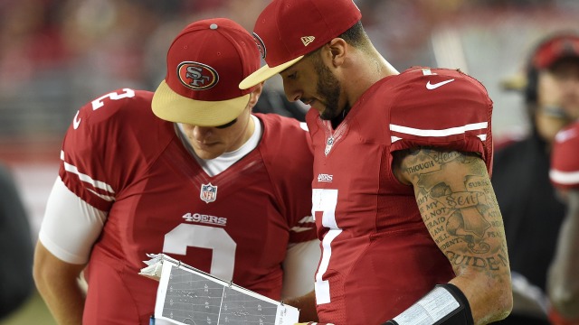 rantsports.com file photo: Blaine Gabbert (2) and Colin Kaepernick (7) quarterbacks of the San Francisco 49ers getting prepared for this Sunday’s game against the Houston Texans at Levis Stadium