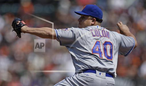 AP photo: New York Mets starter Bartolo Colon in first inning pitching held the San Francisco Giants to two runs in the Mets 9-5 win at AT&T Park on Saturday