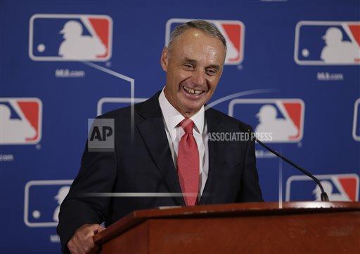 AP photo: Major League Baseball Commissioner Rob Manfred takes questions from the media at the baseball owners meetings last Thursday in Houston