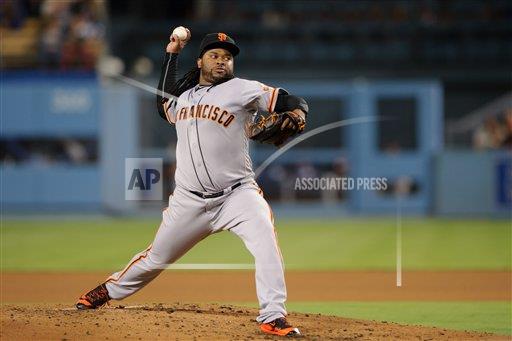 AP photo: San Francisco Giants pitcher Johnny Cueto throws to the Los Angeles Dodgers took a tough loss giving up just one run to lose at Dodger Stadium on Wednesday night