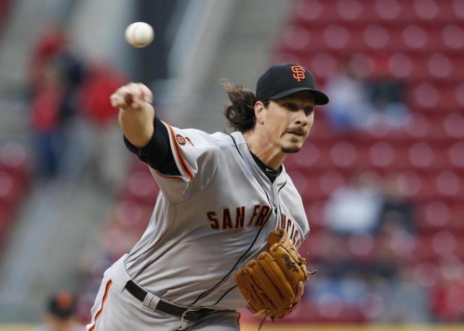 file photo: San Francisco Giants pitcher Jeff Samardjiza was cruising to a no hitter until the New York Mets Yoenis Cespedes took him deep for a two run homer in his last outing. Samardjiza like the rest of the rotation has had some tough outings since the All Star break