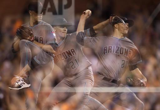 AP photo: The multiple exposure gives you an idea what the San Francisco Giants had to look at on Tuesday night facing the Arizona Diamondbacks ace Zack Greinke