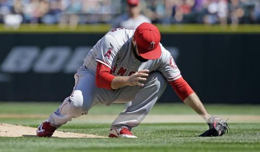AP file photo: Los Angeles Angels pitcher Matt Shoemaker collapses after taking a line drive in the head hit by the Seattle Mariners Kyle Seager at Safeco Field in Seattle on Sunday