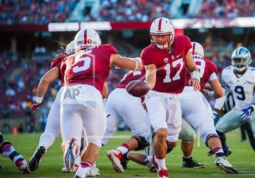 AP photo: Stanford Cardinal quarterback Ryan Burns (17) hands off to running back Christian McCaffrey (5) in Sept 2 game versus Kansas State at Stanford Stadium