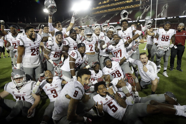 AP photo Jose Sanchez: It’s a zoo at Wahzoo as Washington State Cougar players assemble after a convincing win 42-16 over the Stanford Cardinal at Stanford Stadium Saturday night