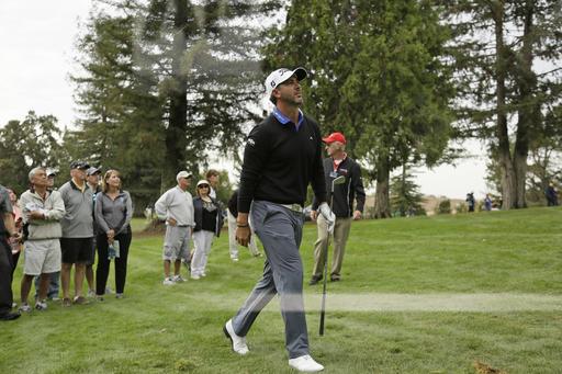 AP photo: Scott Piercy follows a shot below the fairway up onto the green of the Silverado Resort North Course during the first round of the Safeway Open golf tournament Thursday