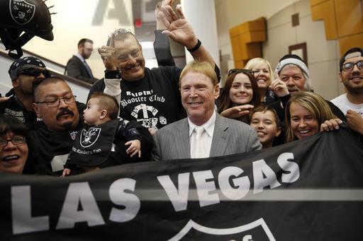 AP file photo: In this file photo Apr 28th Oakland Raiders owner Mark Davis “Just Move Baby” meets with Raiders fans in Las Vegas as the Southern Nevada Tourism Infrastructure Committee hosted a meeting with Davis as lawmakers consider funding for a $1.9 billion stadium and a $1.4 billion convention center on the strip in Vegas on Mon Oct 10th