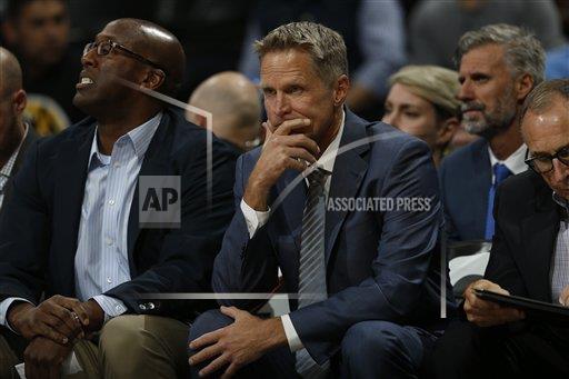 AP file photo: Golden State Warriors head coach Steve Kerr in Oct 14th photo is happy for his former assistant coach Luke Walton who is now head coach at the Los Angeles Lakers faced each other in their pre season game against the Los Angeles Lakers at T-Mobile Center Las Vegas on Saturday night