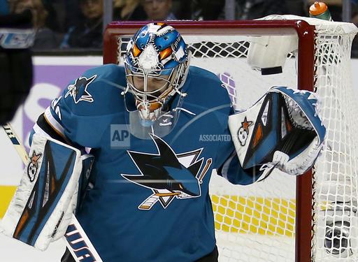 AP photo: Try as hard as he can San Jose Sharks goalie Aaron Dell (30) couldn’t stop World Championship like shooting by the Pittsburgh Penguins on Saturday night at SAP Center