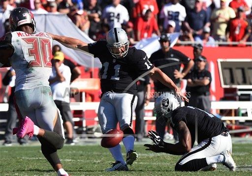 AP file photo: Oakland Raiders kicker Sebastian Janikowski (11) doesn’t miss much here he misses a field goal against the Tampa Bay Buccaneers on Oct 30th game in Tampa Bay. It was still a happy ending for Jano and the Raiders who ended up winning the ball game.
