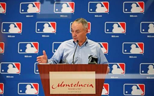 AP photo: Major League Baseball Commissioner Rob Manfred addresses the media at the MLB GM Meetings on Wed Nov 9 will have to clear up issues between the owners and players to avoid a lockout what could be the first work stoppage since 1994