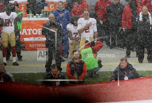 AP photo: San Francisco 49ers quarterback Colin Kaepernick whether sleet, rain or even snow takes a knee during the national anthem before their game against the Chicago Bears at Soldier Field