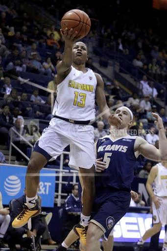 AP file photo: Cal Bears Charlie Moore (left) drives on UC Davis guard Siler Schneider (right) in the first half of last Saturday’s game at Haas Pavilion at UC Berkeley
