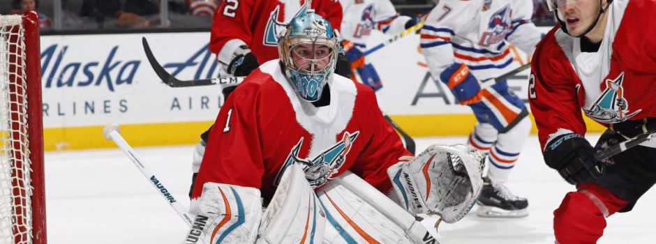 sjbarracuda.com photo: San Jose Barracuda goaltender Troy Grosenick picks up another shutout against the visiting Bakersfield Condors at SAP Center on Saturday night in AHL action