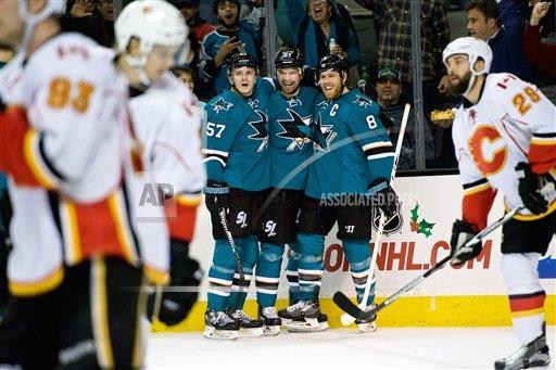 After a lackluster first-period effort that saw the two teams combine for 17 shots, the Sharks opened the flood gates. San Jose peppered Calgary goaltender Chad Johnson, slipping four pucks past him on 13 shots.